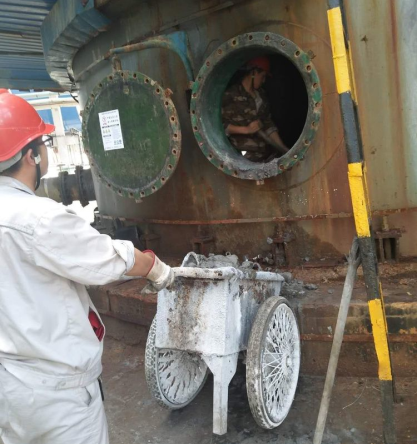 設(shè)備會(huì)在溫度、壓力的波動(dòng)下產(chǎn)生交變應(yīng)力導(dǎo)致承壓設(shè)備的材料疲勞,也會(huì)在介質(zhì)腐蝕作用下使得承壓設(shè)備的壁厚減薄或材質(zhì)劣化,因此為了保障使用安全,必須對(duì)在用鍋爐壓力容器進(jìn)行檢測(cè),雖然檢測(cè)過(guò)程簡(jiǎn)單,但需要的準(zhǔn)備卻是特別多,鋼管、踏板、打磨。在爐膛內(nèi)搭腳手架,一層一層,像蓋樓房一樣,將所需要的材料從小小的人孔門(mén)送入,還要防止架手架對(duì)管壁造成傷害,可以想象在這過(guò)程中的艱辛與困難,最可愛(ài)的人,為你們喝彩。