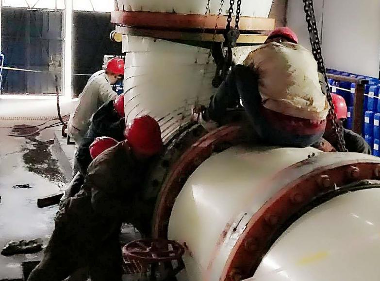 各效體刷洗、水封桶漏點補焊、高空管道等各個漏點的檢查、修復(fù)、設(shè)備零件的更換,檢修現(xiàn)場處處都是檢修人員全力奮戰(zhàn)的身影。