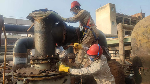 你瞧,正在冷凍檢修的馬寶林和趙久龍同志在一絲不茍焊接著管道,全然忘卻了身邊吹過(guò)呼呼的大風(fēng)。當(dāng)然,這只是氯乙烯裝置當(dāng)中很小的一部分縮影,當(dāng)寒風(fēng)刮過(guò)臉龐,那種寒冷真是無(wú)人能夠替代,為了早點(diǎn)完成任務(wù),沒(méi)有一個(gè)人懈怠,最終,他們克服了疲勞,戰(zhàn)勝了寒冷,默默地彰顯了氯乙烯人獨(dú)有的精神風(fēng)貌。