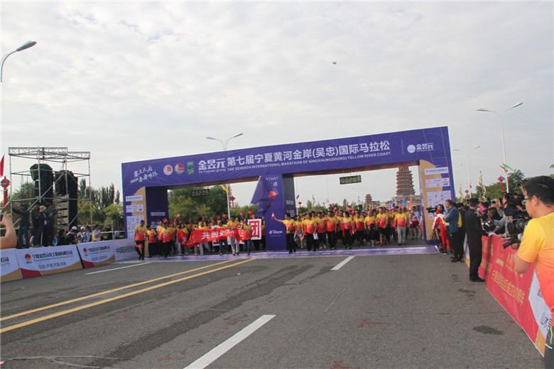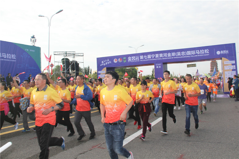 2018金昱元第七屆寧夏黃河金岸(吳忠)國際馬拉松在黃河奧林匹克公園開跑。金昱元與寧馬在2017年首次進行馬拉松賽事合作就建立了良好的合作基礎(chǔ)與友誼。2018年,金昱元再次攜手寧馬,成為本屆寧馬賽事的總冠名贊助商。