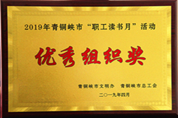 集團公司工會取得優(yōu)異成績,榮獲2019年青銅峽市“職工讀書月”活動優(yōu)秀組織獎。