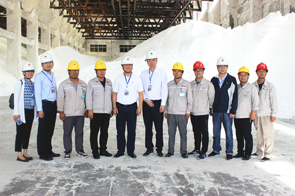 白鴻一行先后到興昊永勝鹽業(yè)公司鹽庫、鹽硝裝置、熱力裝置、企業(yè)文化展廳等地進行實地調(diào)研,并在鹽庫合影留念。