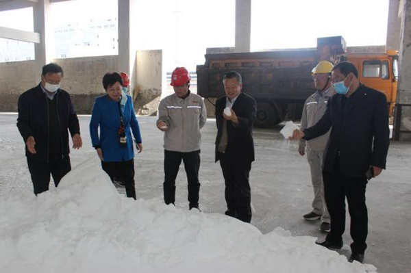 王紫云副主席一行先后到固原片區(qū)展廳、中控室、鹽倉、廠區(qū)等進行實地查看。集團公司副總裁兼片區(qū)總經(jīng)理喬冠榮就片區(qū)疫情防控、復(fù)工復(fù)產(chǎn)、生產(chǎn)經(jīng)營等情況進行了匯報。