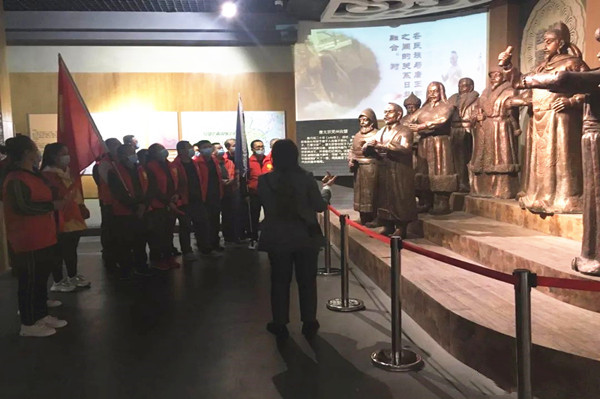 黨旗與金昱元旗幟高高飄揚(yáng),黨員們身著紅色志愿者馬夾,手持五星紅旗,排著整齊的隊(duì)伍接受防疫檢查。展覽廳里,大家認(rèn)真聆聽(tīng)古靈州歷史文化、吳忠革命史講解,或駐足細(xì)心觀賞歷史文物,或三五一群交流體會(huì)。大家悉心領(lǐng)略地方文化史,回顧紅色歷史,緬懷革命先烈,汲取前行力量。恰逢明年是中國(guó)共產(chǎn)黨建黨100周年和金昱元集團(tuán)建企30周年,全體黨員重溫了入黨誓詞,黨支部書(shū)記向全體黨員分享了30年來(lái)企業(yè)沐浴改革開(kāi)放春風(fēng),在建設(shè)、改革、發(fā)展過(guò)程中的故事和取得的成就。