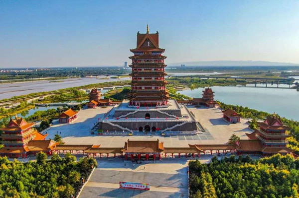 參觀完吳忠市博物館,大家又驅(qū)車(chē)來(lái)到青銅峽標(biāo)志性建筑——?dú)鈩?shì)恢弘的黃河樓,受到黃河樓旅游公司領(lǐng)導(dǎo)的熱情接待,為支持黨建工作,黃河樓旅游公司免去全員門(mén)票,并全程安排講解。