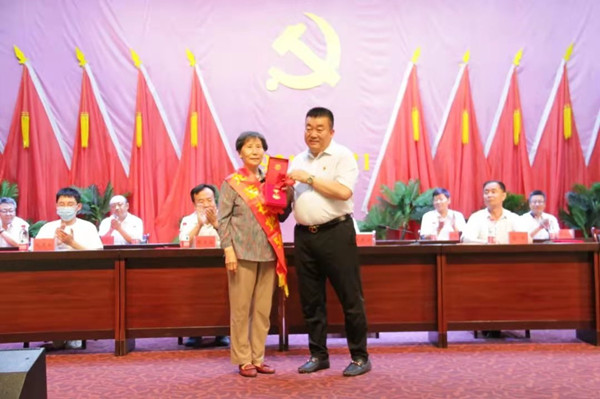 集團(tuán)公司黨委書(shū)記代良云同志向老黨員郭淑珍頒發(fā)“光榮在黨50年”紀(jì)念章