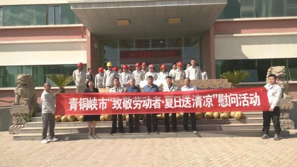 青銅峽市總工會(huì)和固原經(jīng)濟(jì)開(kāi)發(fā)區(qū)總工會(huì)為集團(tuán)公司送來(lái)西瓜、礦泉水、金絲菊、冰糖等防暑物品,表達(dá)對(duì)企業(yè)一線員工關(guān)心和厚愛(ài)。