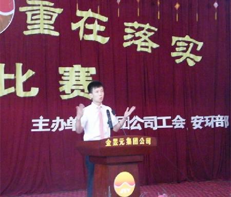 為進(jìn)一步落實(shí)企業(yè)安全生產(chǎn)主體責(zé)任,繼續(xù)推動(dòng)公司“安全生產(chǎn)年”活動(dòng)的深入開展,6月30日,寧夏金昱元化工集團(tuán)公司工會(huì)、團(tuán)委、安全環(huán)保部聯(lián)合舉辦了以“安全責(zé)任,重在落實(shí)”為主題的安全知識(shí)演講比賽。公司領(lǐng)導(dǎo)及員工代表300余人觀看了比賽。
