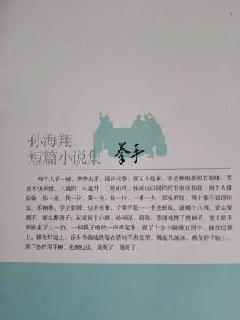 在文學(xué)日益式微的今天,仍有一些虔誠的信徒堅(jiān)守在文化創(chuàng)作的金牧場,F(xiàn)供職于寧夏金昱元化工集團(tuán)有限公司的孫海翔,二十年如一日始終在青銅峽市這片熱土上堅(jiān)持著他的文學(xué)夢想。歷時半年,短篇小說集《拳手》終于出版。這是青銅峽市作家孫海翔出版的第一部書,共收入28篇短篇小說。